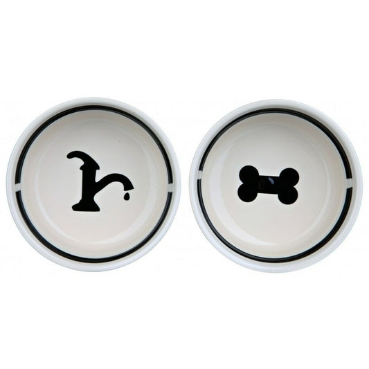 Comedero para Mascotas Trixie Doble Cuenco Blanco Negro Cerámico 0,6 L