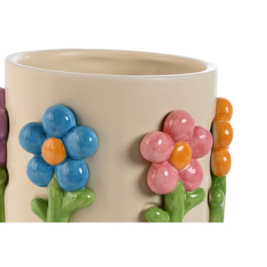 Macetero Home ESPRIT Multicolor Crema Dolomita Flores 20 x 20 x 18 cm