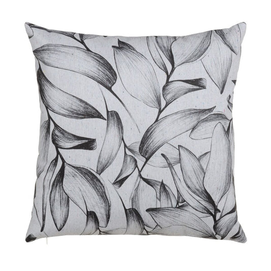 Cojín Poliéster Algodón Blanco Negro Hojas 45 x 45 cm